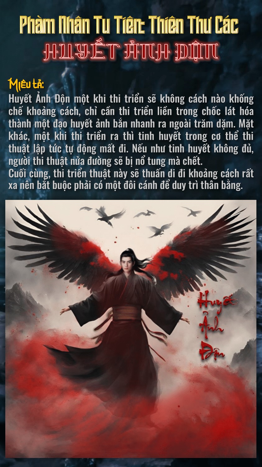 “Huyết Ảnh Độn” là loại độn thuật được Hàn Lập học được từ một quyển sách làm bằng da yêu thú, được ghi bằng một loại thượng cổ yêu tộc văn tự.